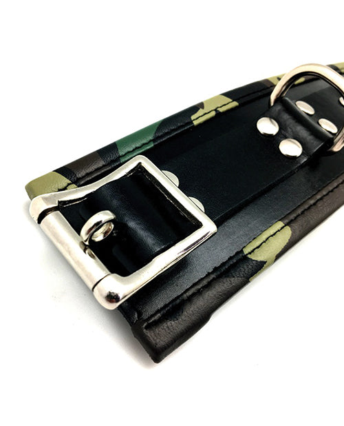 Sensual Sin Leather Padded Wrist Cuffs - Camo Piping