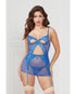 Peek a Boo Cup Chemise w/Outer Garterbelt Blue O/S