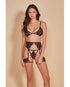 All Eyes On Me Eyelash Lace Bralette, Garterbelt & Strappy G-string Black
