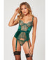 Holiday Eyelash Lace & Satin Bustier W/removable Garters & G-string Green