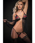 Open Front Clasp Babydoll, Crotchless Garter Thong & Stockings Black O/S