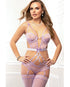 Sumptuous Cutout & Strappy Garter Teddy w/Stockings Tropical Lavender O/S